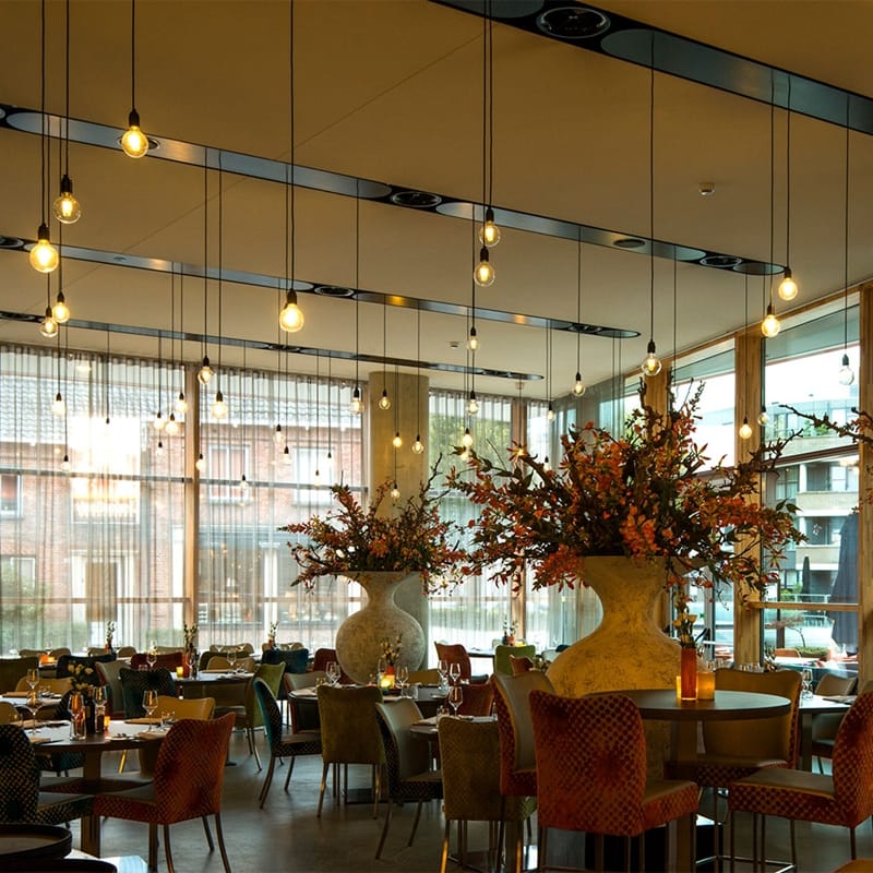 Mooie filament lamp met geel glas en extra warm witte lichtkleur.
