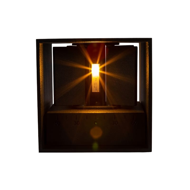 Deze dimbare wandlamp heeft een strak, functioneel ontwerp. De verstelbare kleppen aan beide zijden zijn tot 120° instelbaar. De robuuste aluminium behuizing met poedercoating is weerbestendig en geschikt voor diverse omgevingen.